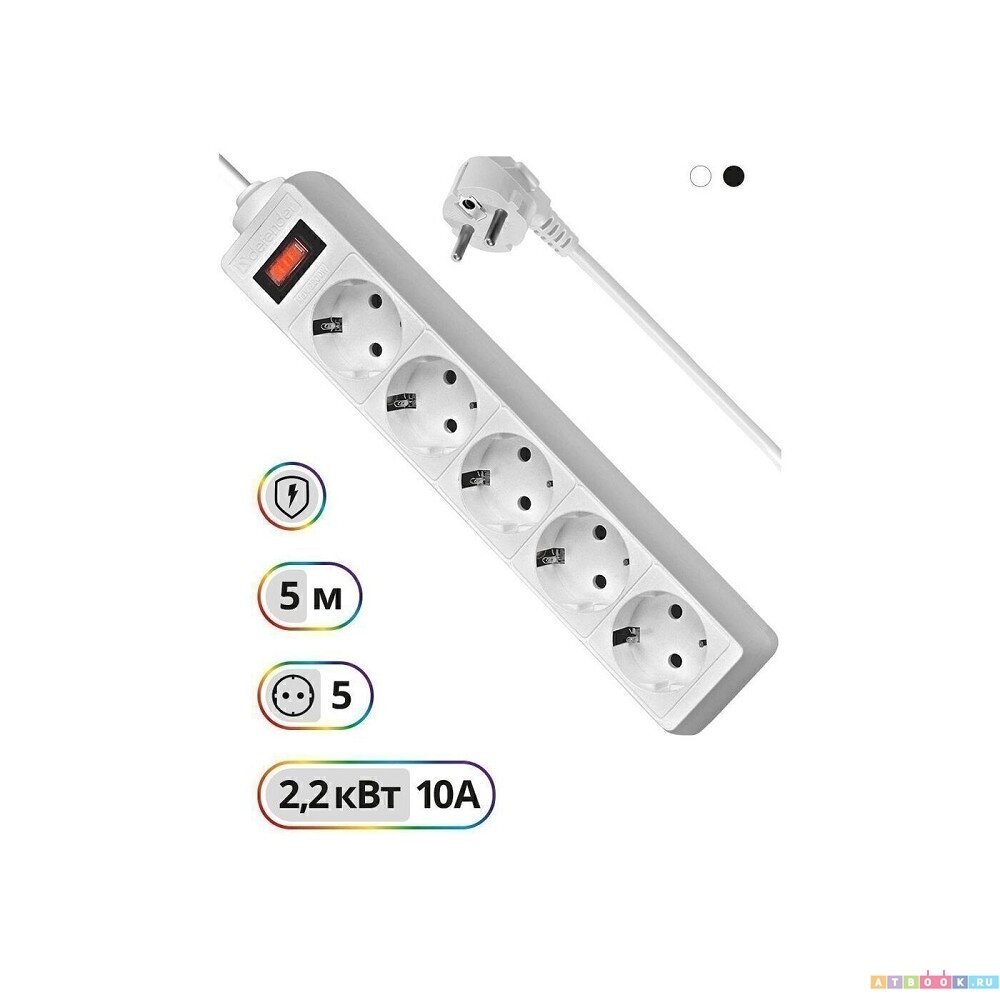 Сетевой фильтр Defender ES (99483), 5 розеток, 5 м, с/з, 10А / 2200 Вт белый