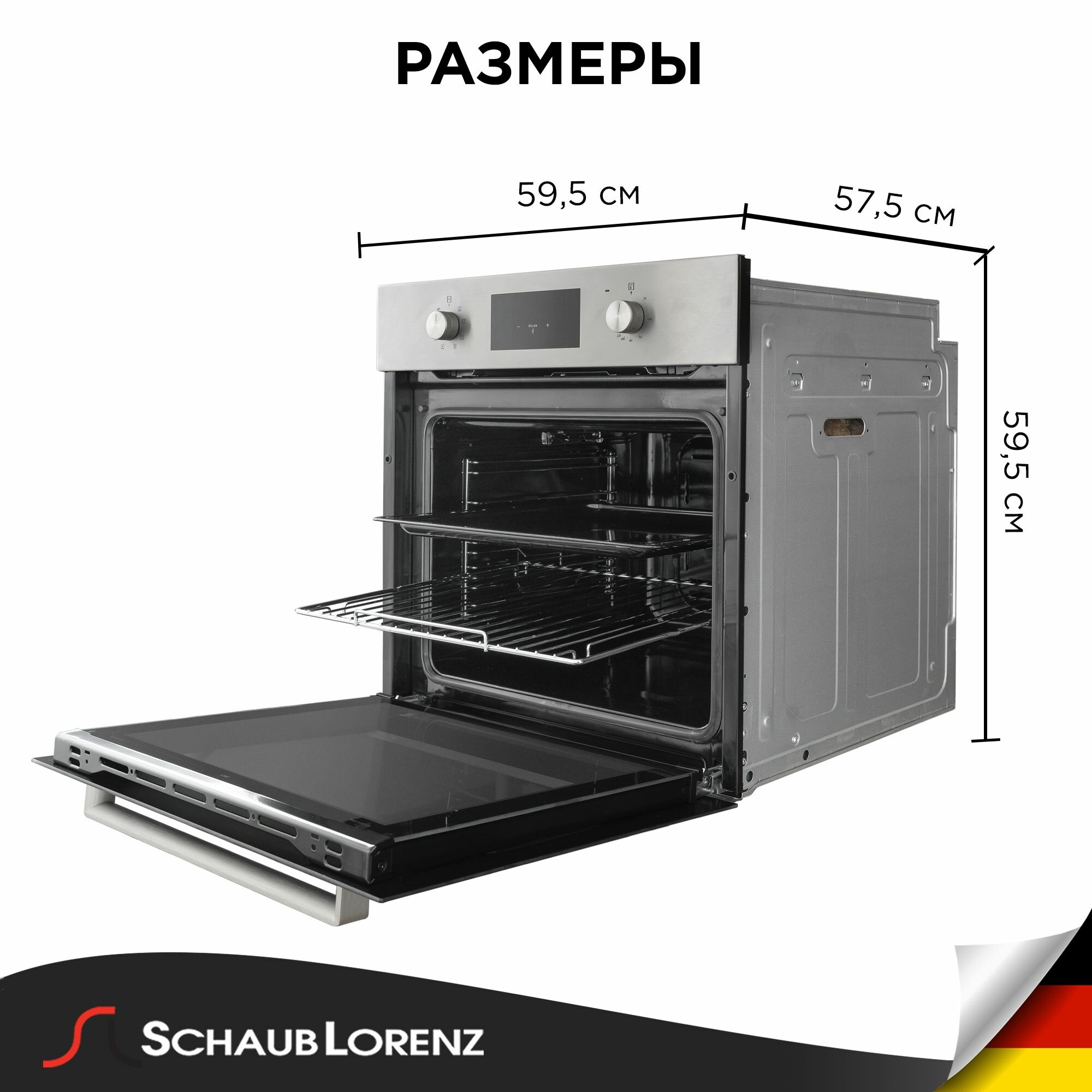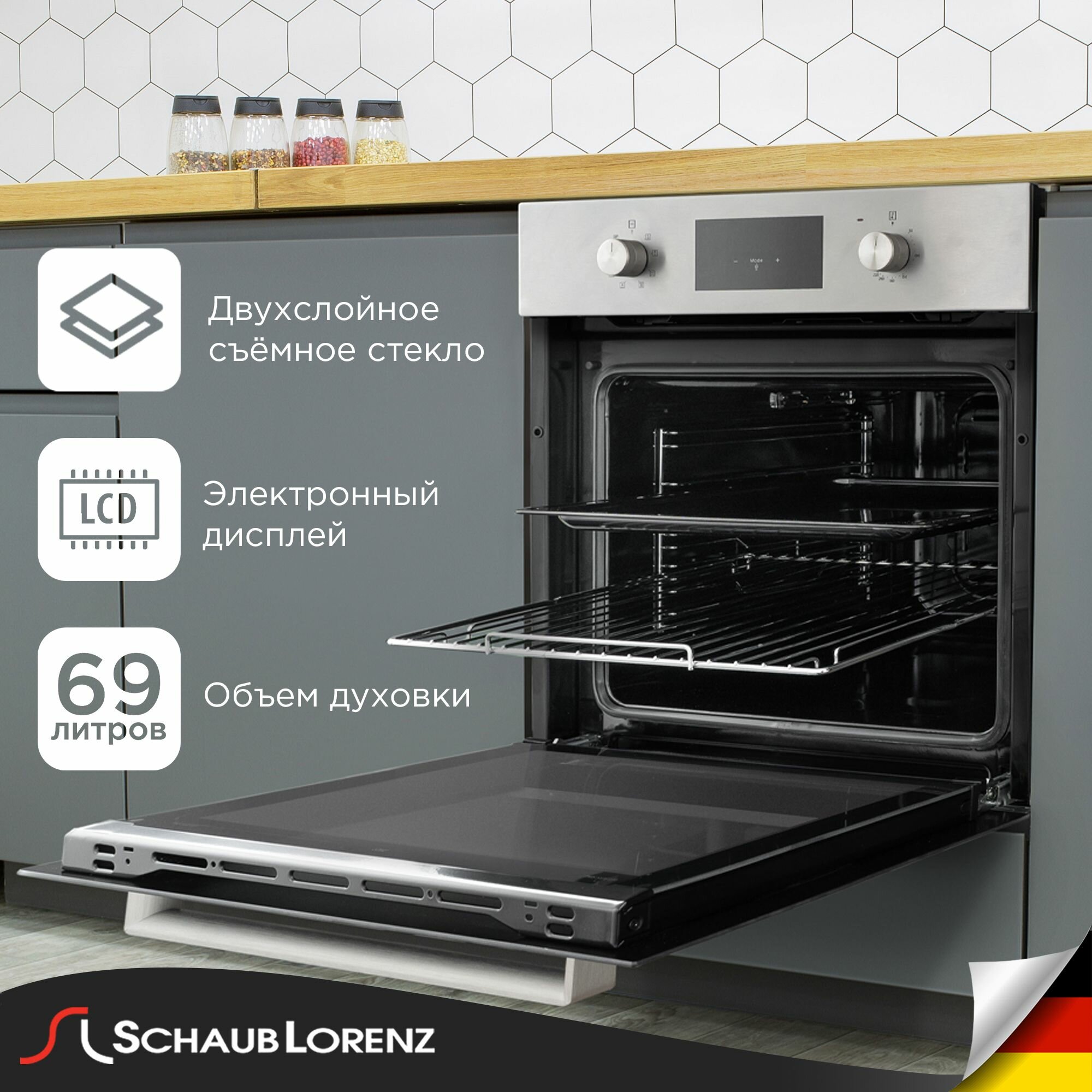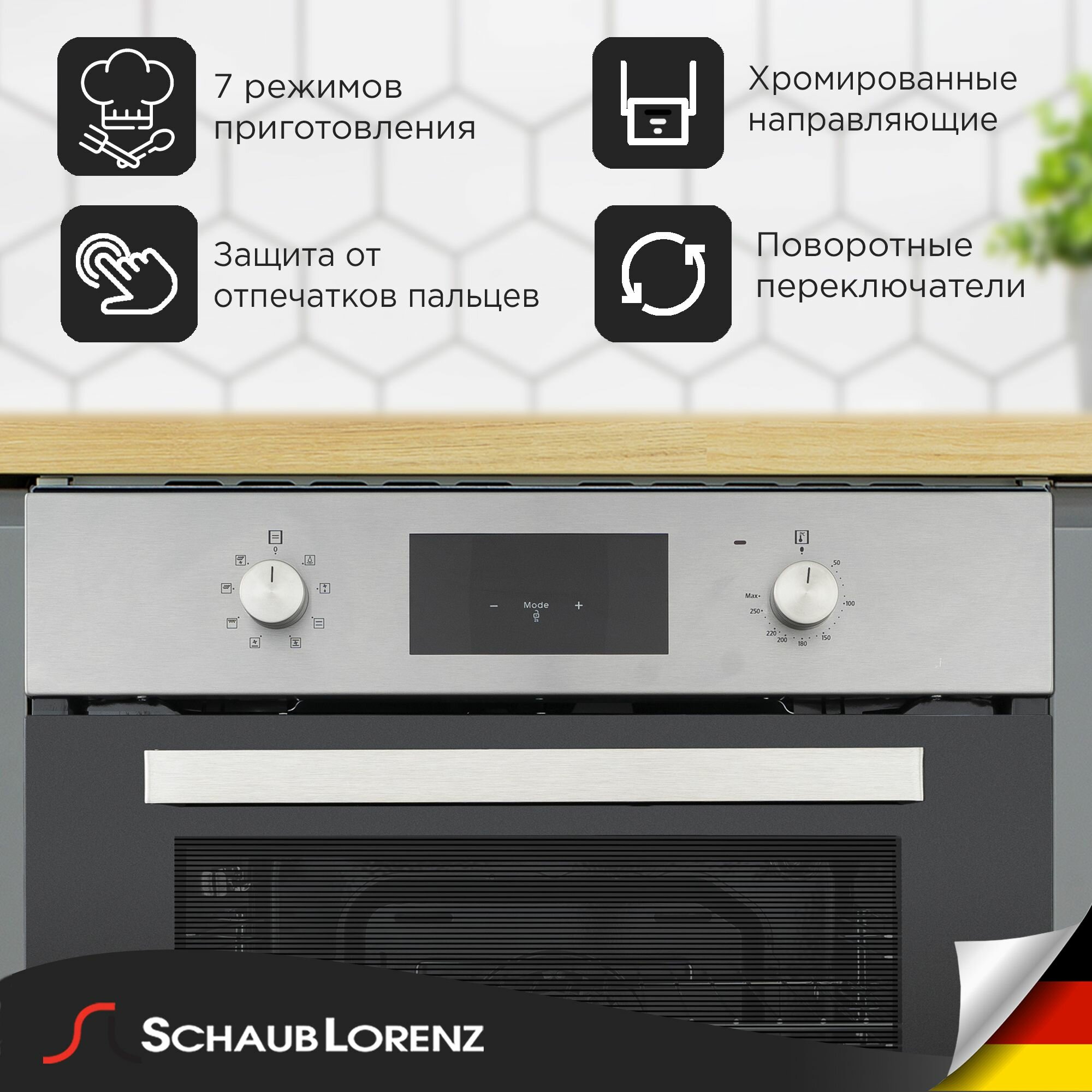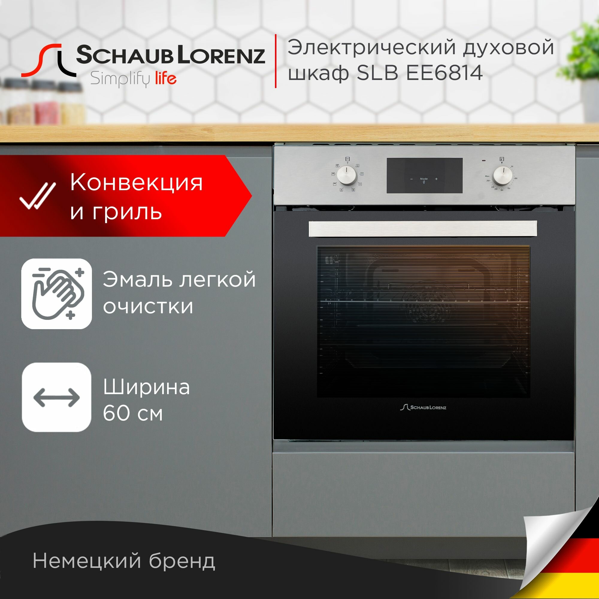 Электрический духовой шкаф встраиваемый Schaub Lorenz SLB EE6814, нержавеющая сталь с покрытием No Fingerprints, 8 режимов, конвекция, гриль, размораживание, объем 69 л