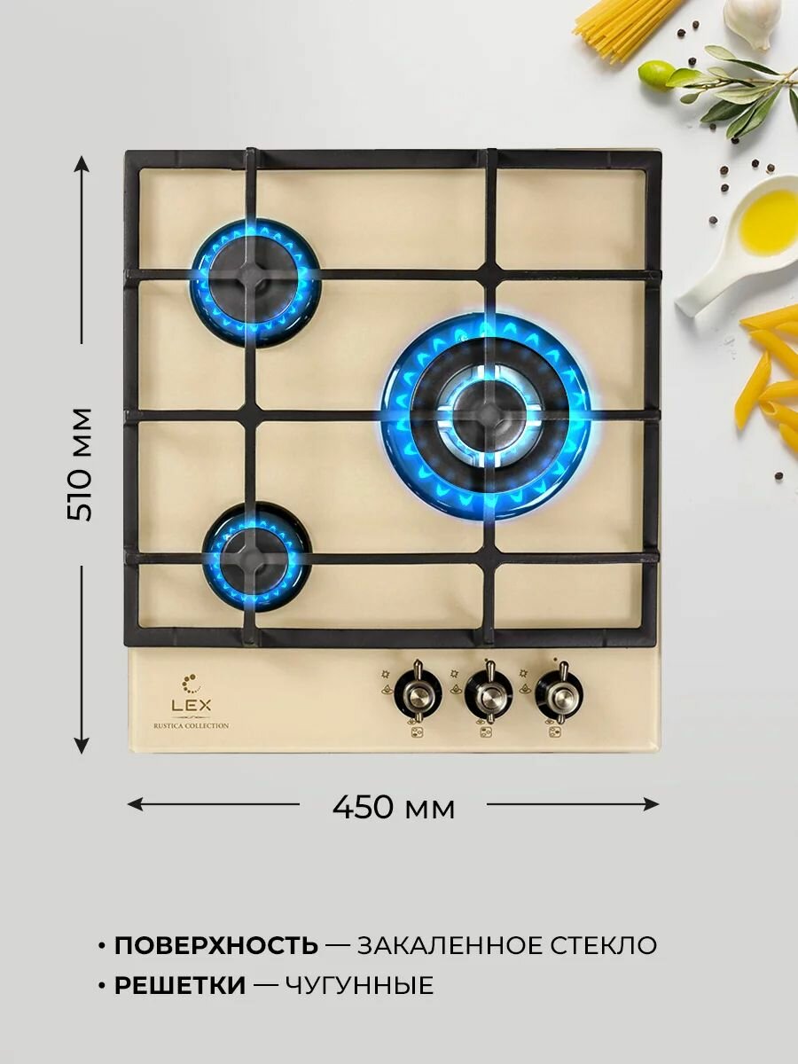 Газовая варочная поверхность Lex GVG 431 C IV слоновая кость