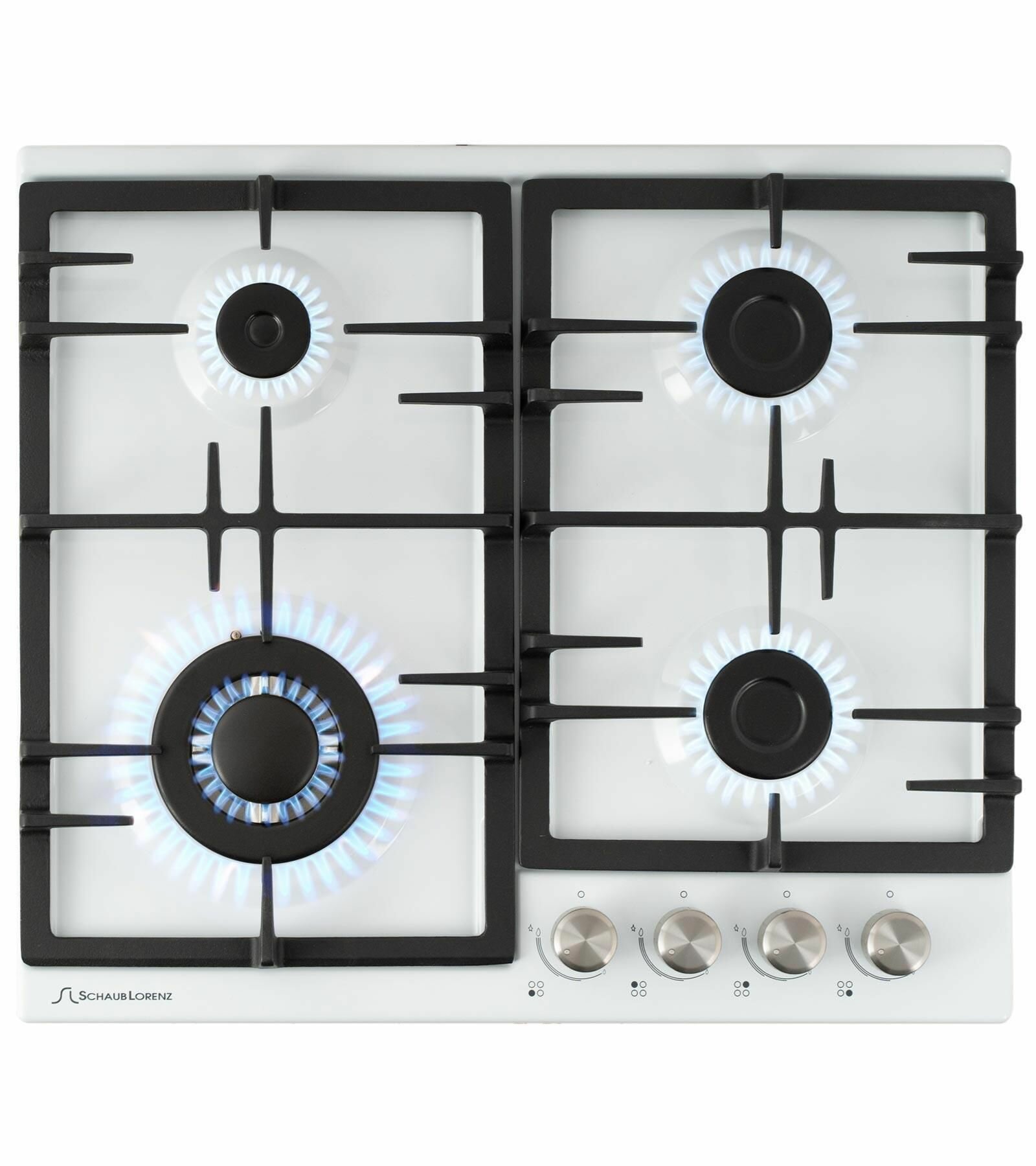 Купить Газовая варочная панель Schaub Lorenz SLK GW6511, белое стекло, газ-контроль, автоматический розжиг конфорок, чугунные решетки, комплект жиклеров для баллонного газа