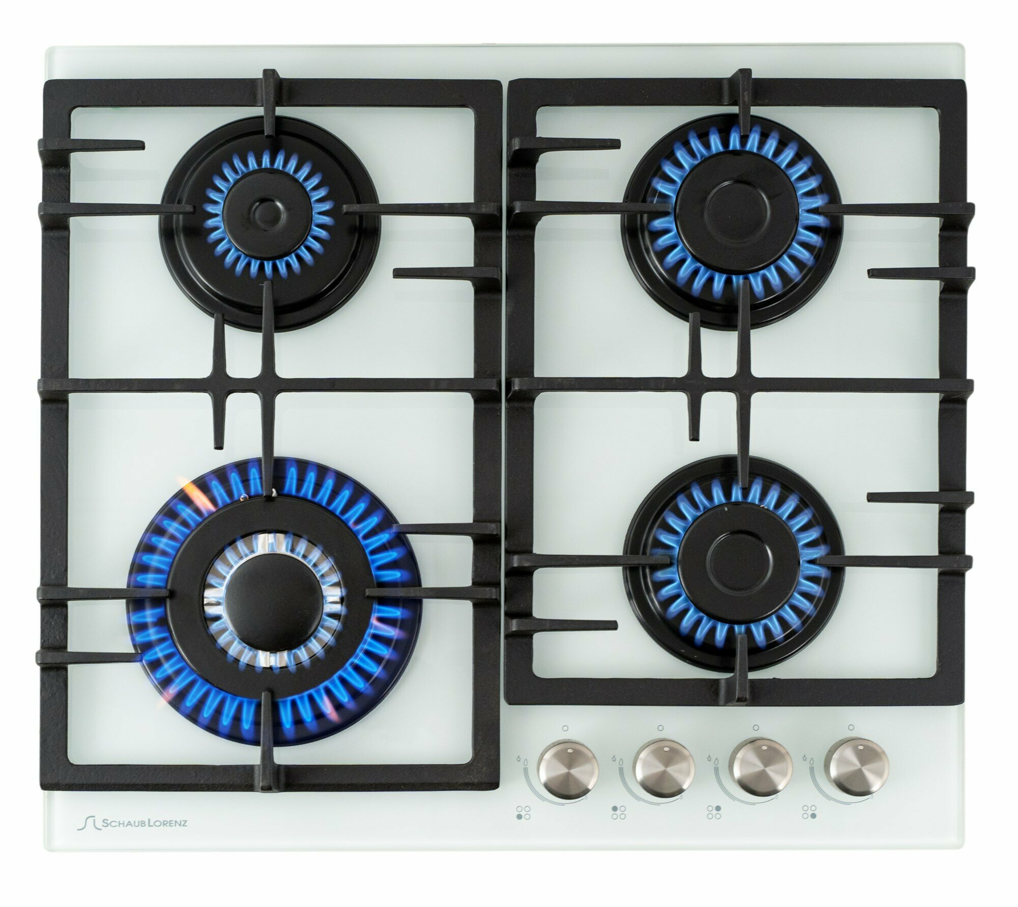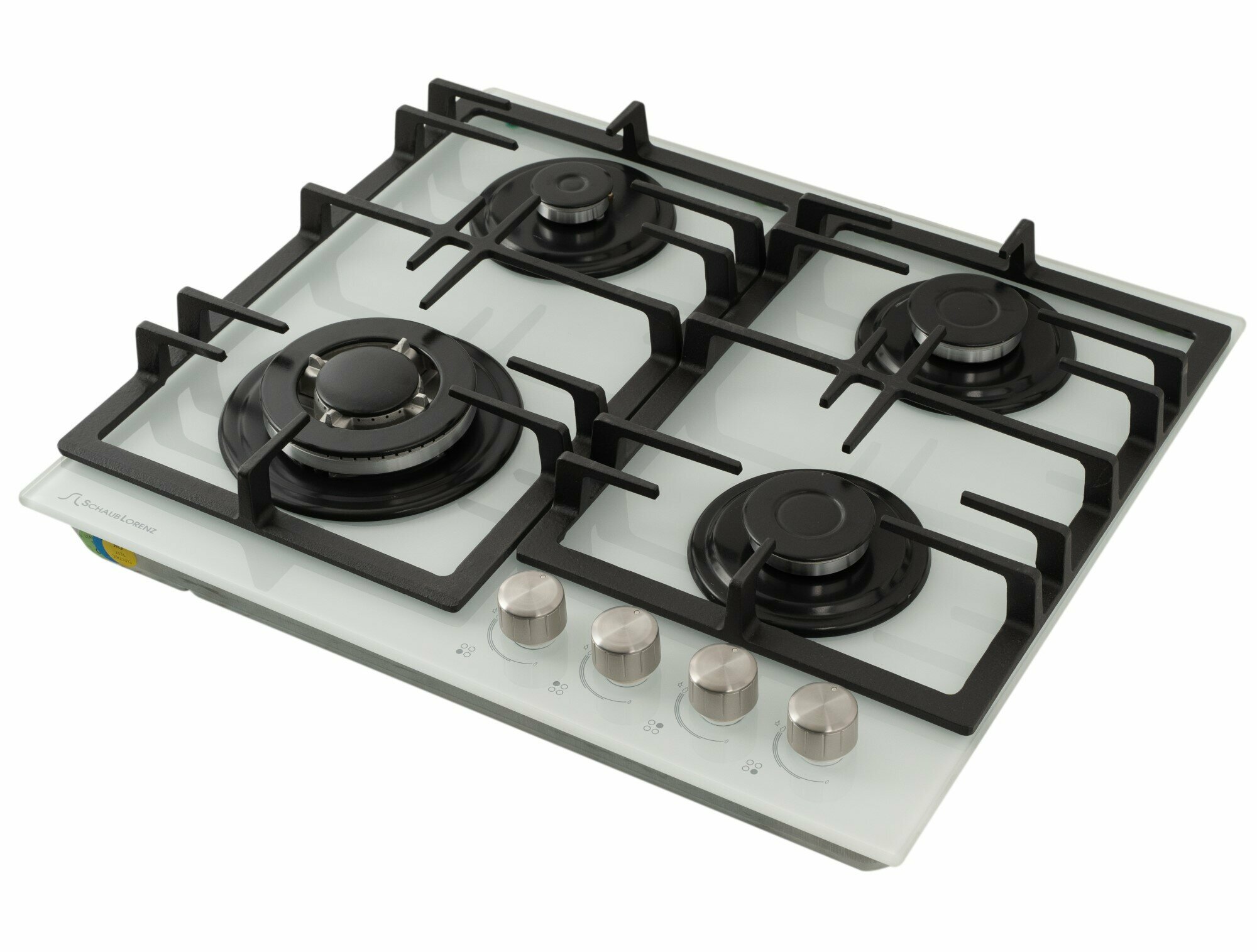 Купить Варочная панель газовая встраиваемая Schaub Lorenz / Шауб Лоренц SLK GL6511 закаленное стекло белый 100х580х510мм 4 конфорки 2 решетки / газ-контроль / электроподжиг / газовая плита