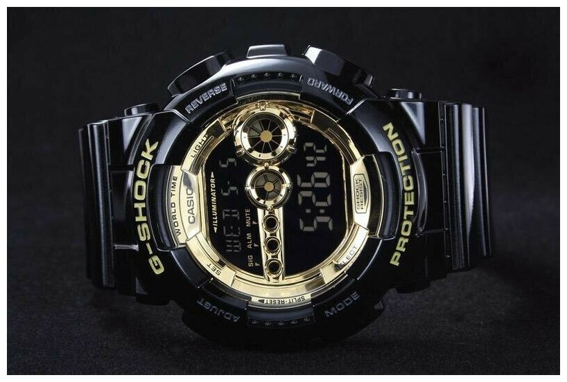 Наручные часы CASIO G-Shock GD-100GB-1E мужские, кварцевые, будильник, хронограф, секундомер, таймер обратного отсчета, водонепроницаемые, противоударные, подсветка дисплея, черный