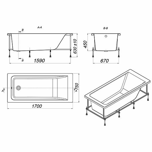 Комплект монтаж д/ванн Easy 170х75 в/к, ROCA ZRU9302900 (1 шт.)