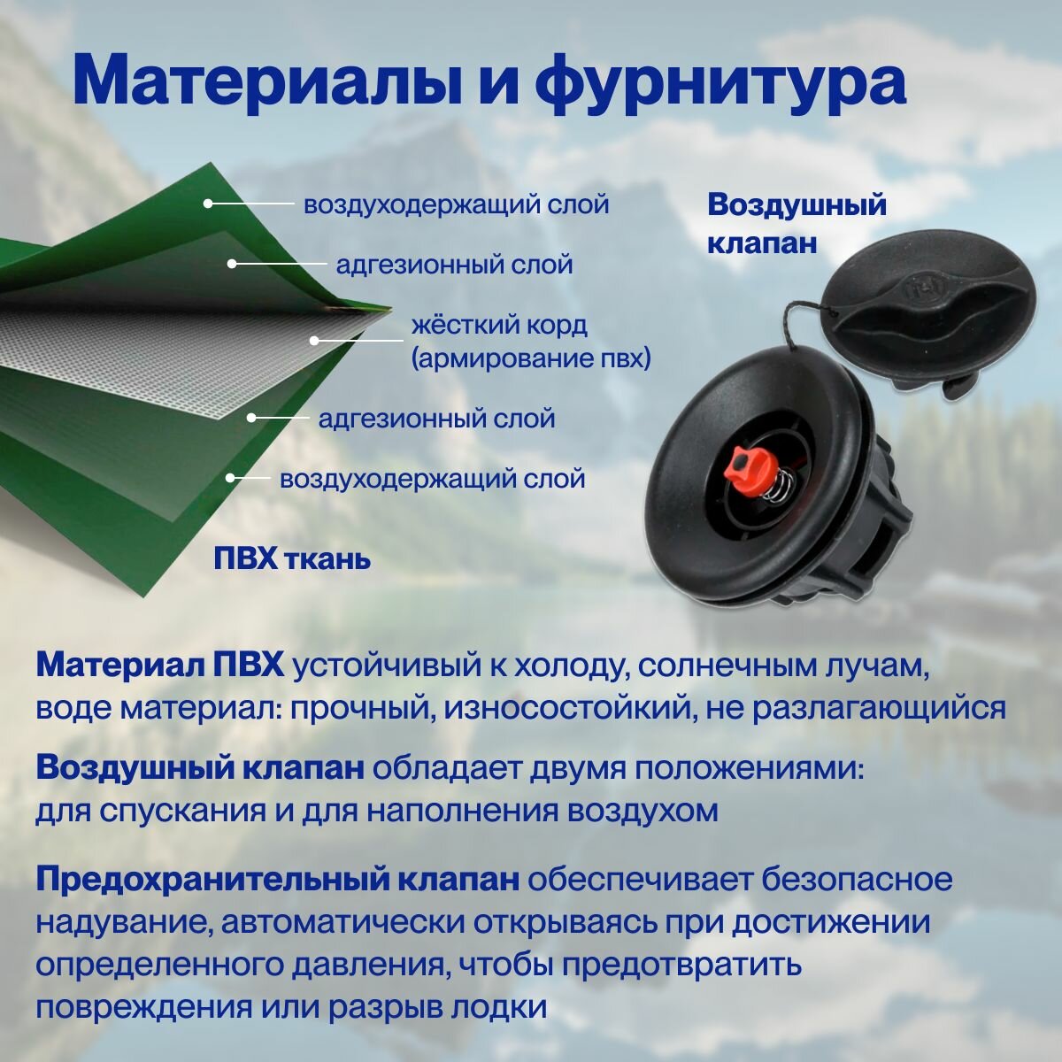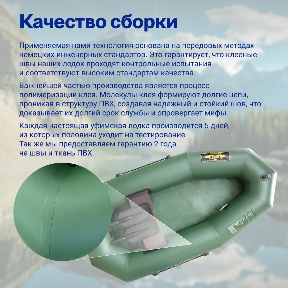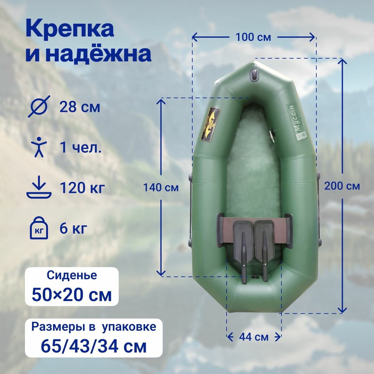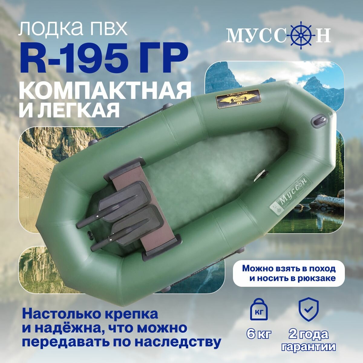 Лодка надувная для рыбалки ПВХ Муссон R-195 ГР (с гребками) гребная одноместная, зеленая интересное: