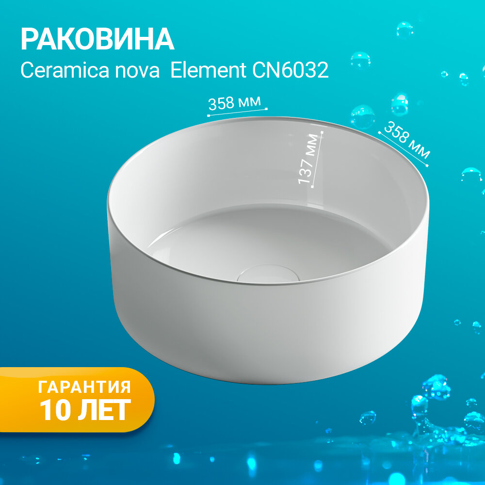 СохранитьРаковина накладная круглая 35,8х35,8х13,7 CERAMICA NOVA ELEMENT CN6032 интересное: