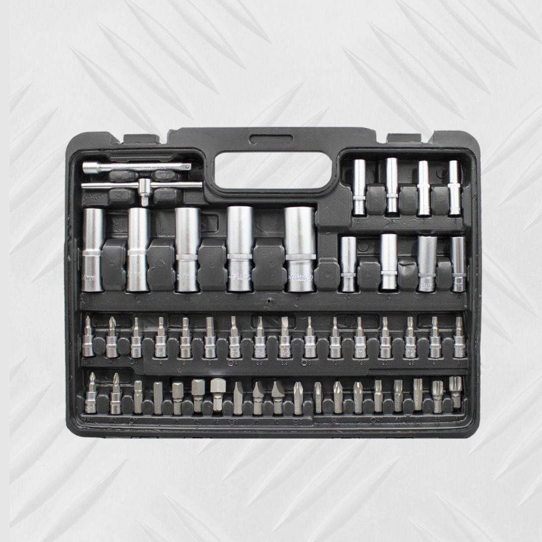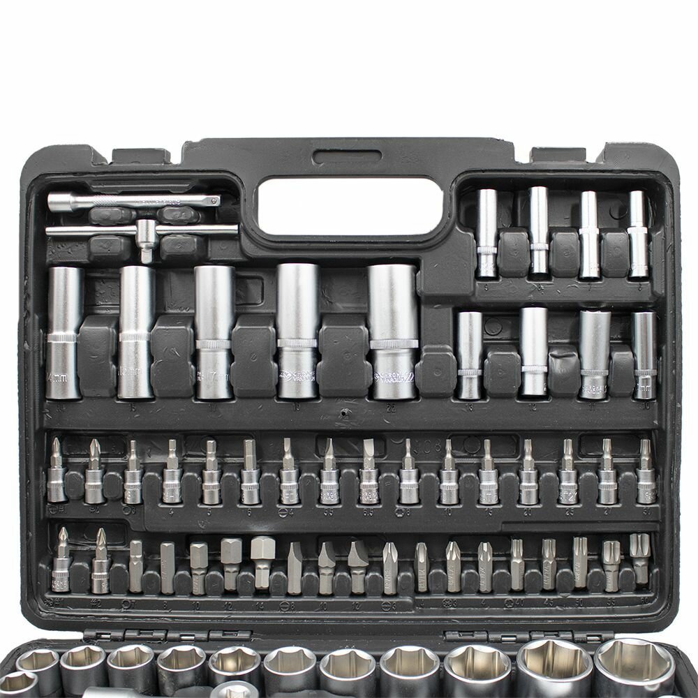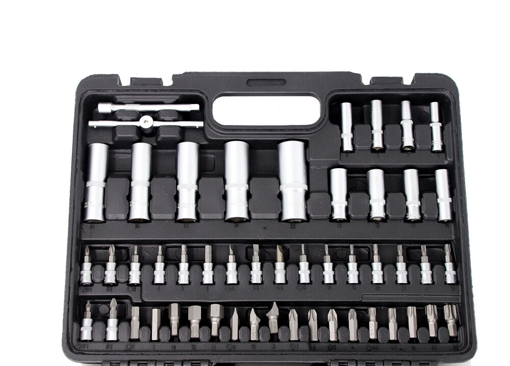 | Минусы: | Кейс хлипковат, тонкий пластик, вызывают недоверие шарниры половинок кейса, места для трещоток и удлинителей без больших углублений |