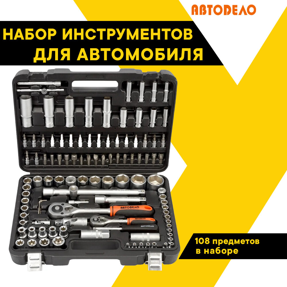 Набор инструментов для автомобиля 108 предметов 1/4", 1/2" Автодело 39818