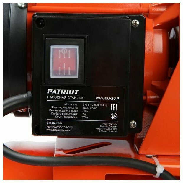 Насосная станция PATRIOT 315302476 PW 800-20 P 800 Вт, 3000 л/час, оранжевый