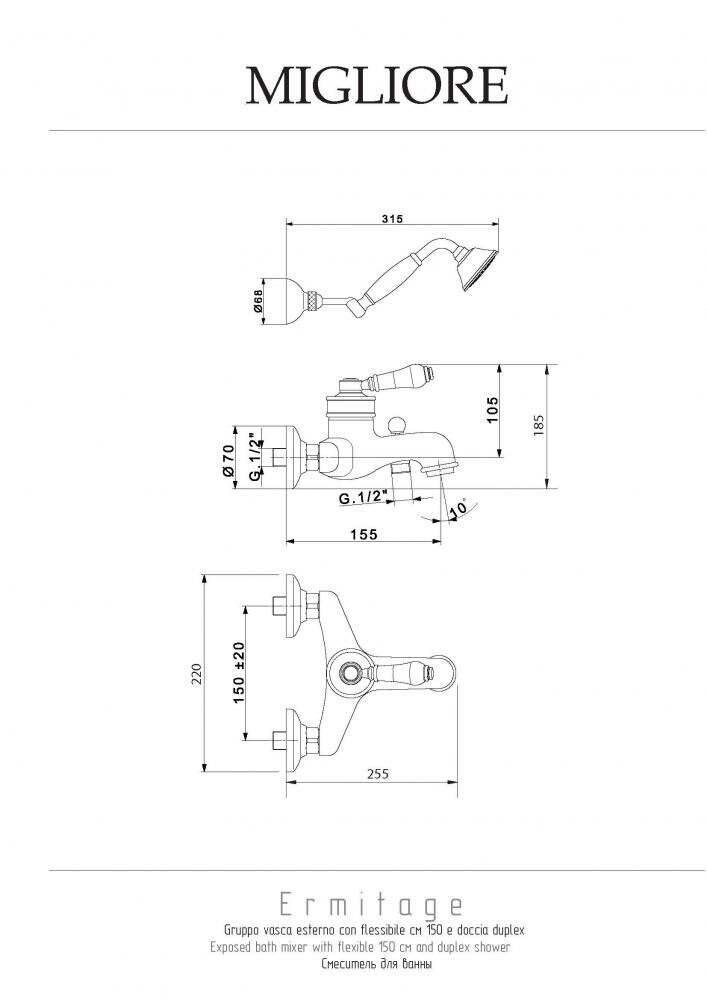 Смеситель Migliore Ermitage ML.ERM-7002 Bi Do для ванны с душем ML.ERM-7002.Bi.Do