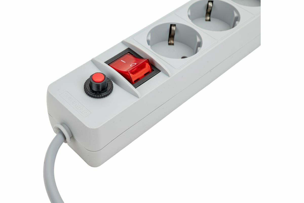 Сетевой фильтр UNIVersal ПВС 3х0.75 6 роз. 1.8 м 10А серый, земля, выкл., шторки 967U-5001 Россия
