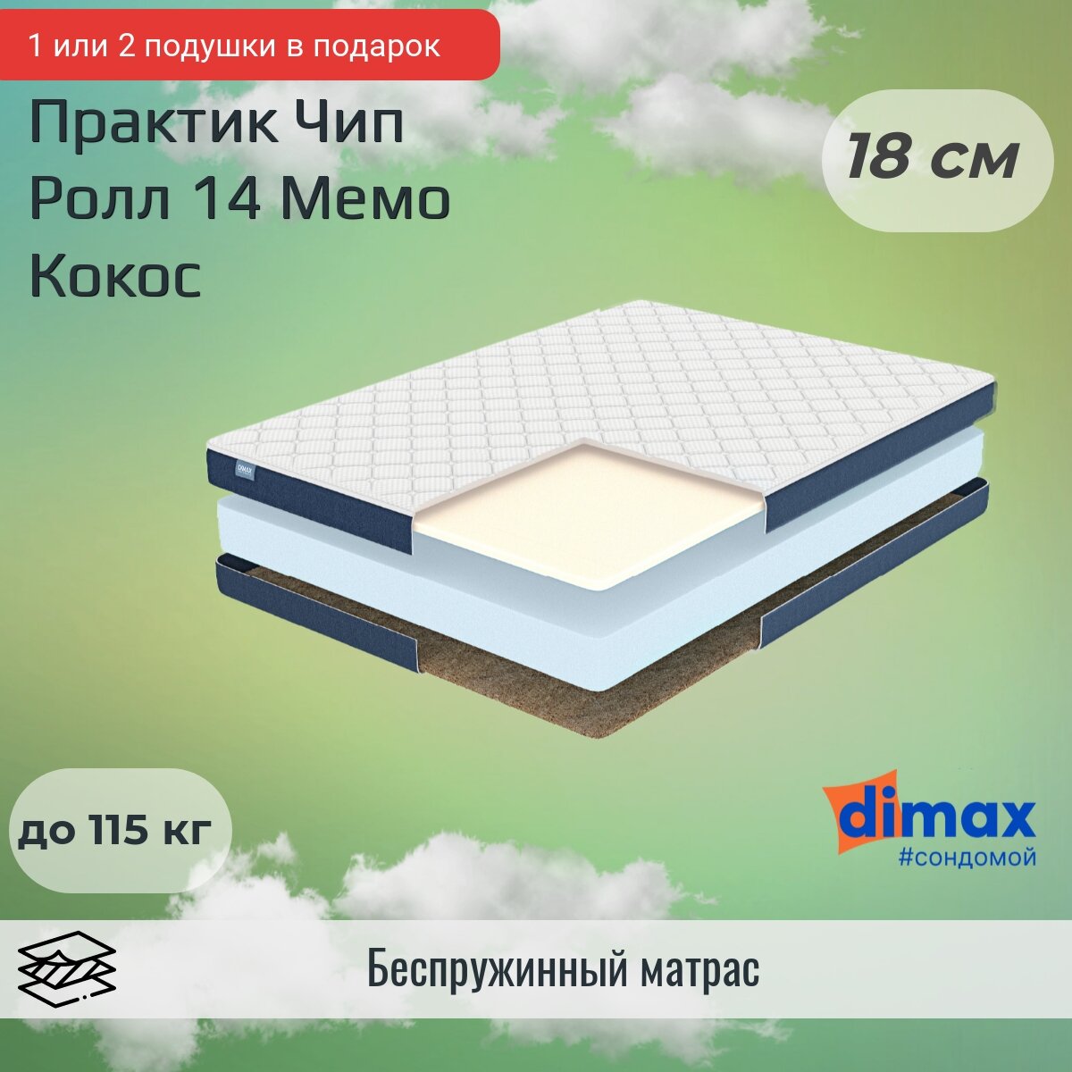 Матрас Dimax Практик Чип Ролл 14, 190x195 см (нестандартный)
