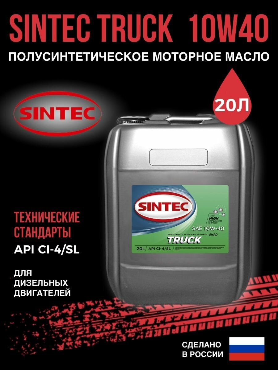 Полусинтетическое моторное масло SINTEC Truck 10W-40 API CI-4/SL, 20 л