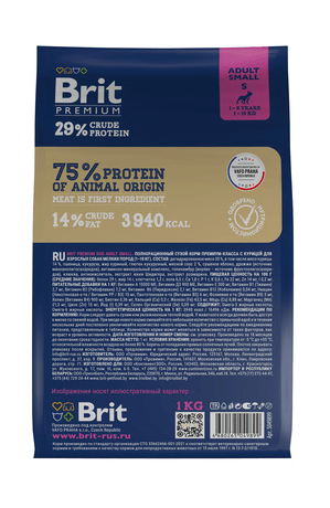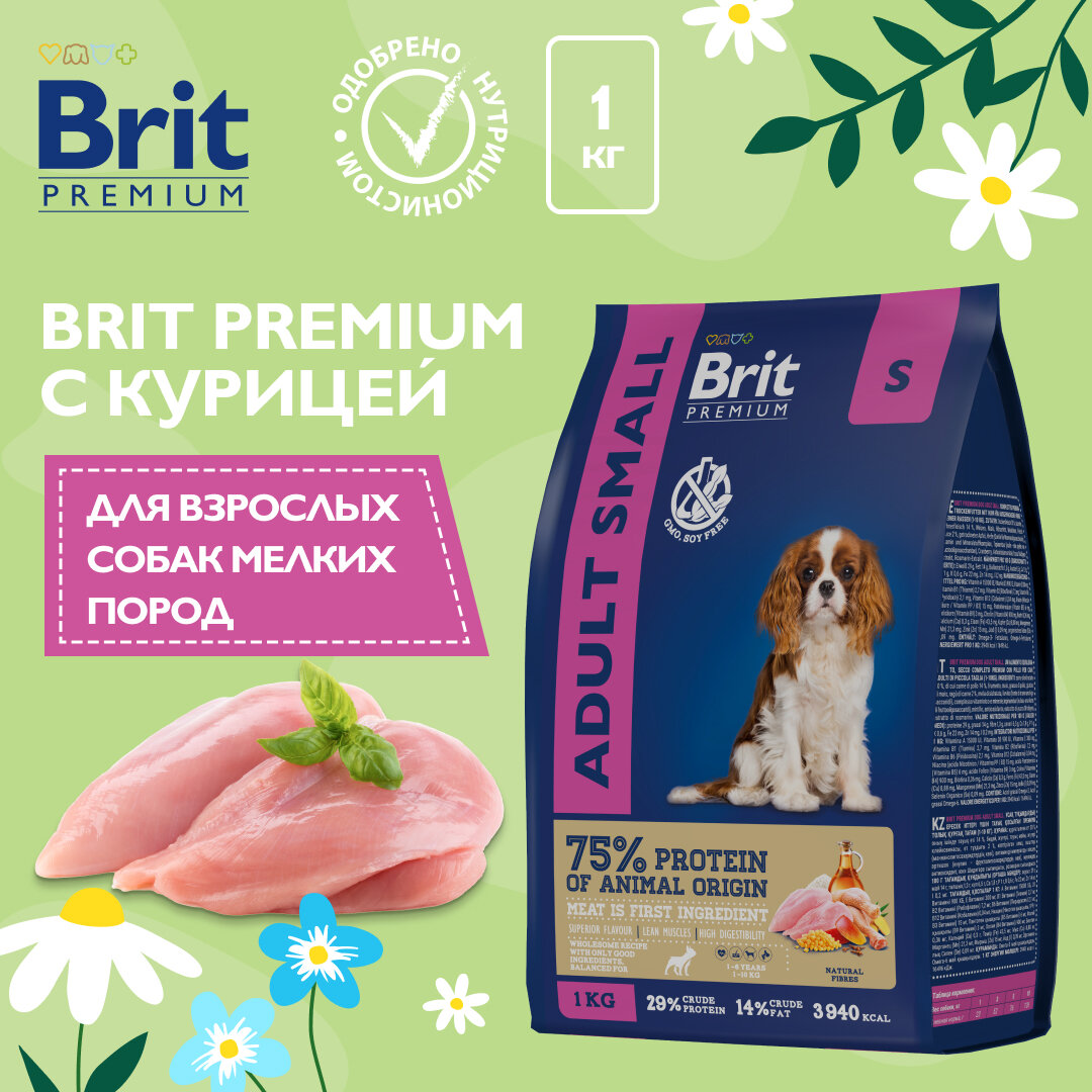 Сухой корм Brit для собак мелких пород курица premium dog adult small 1кг 5049899