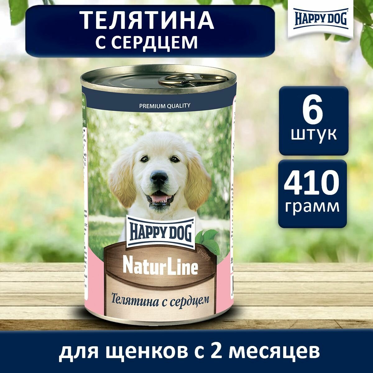 Консервы для щенков Happy Dog NaturLine (Телятина с сердцем), 410 гр. по 6шт.