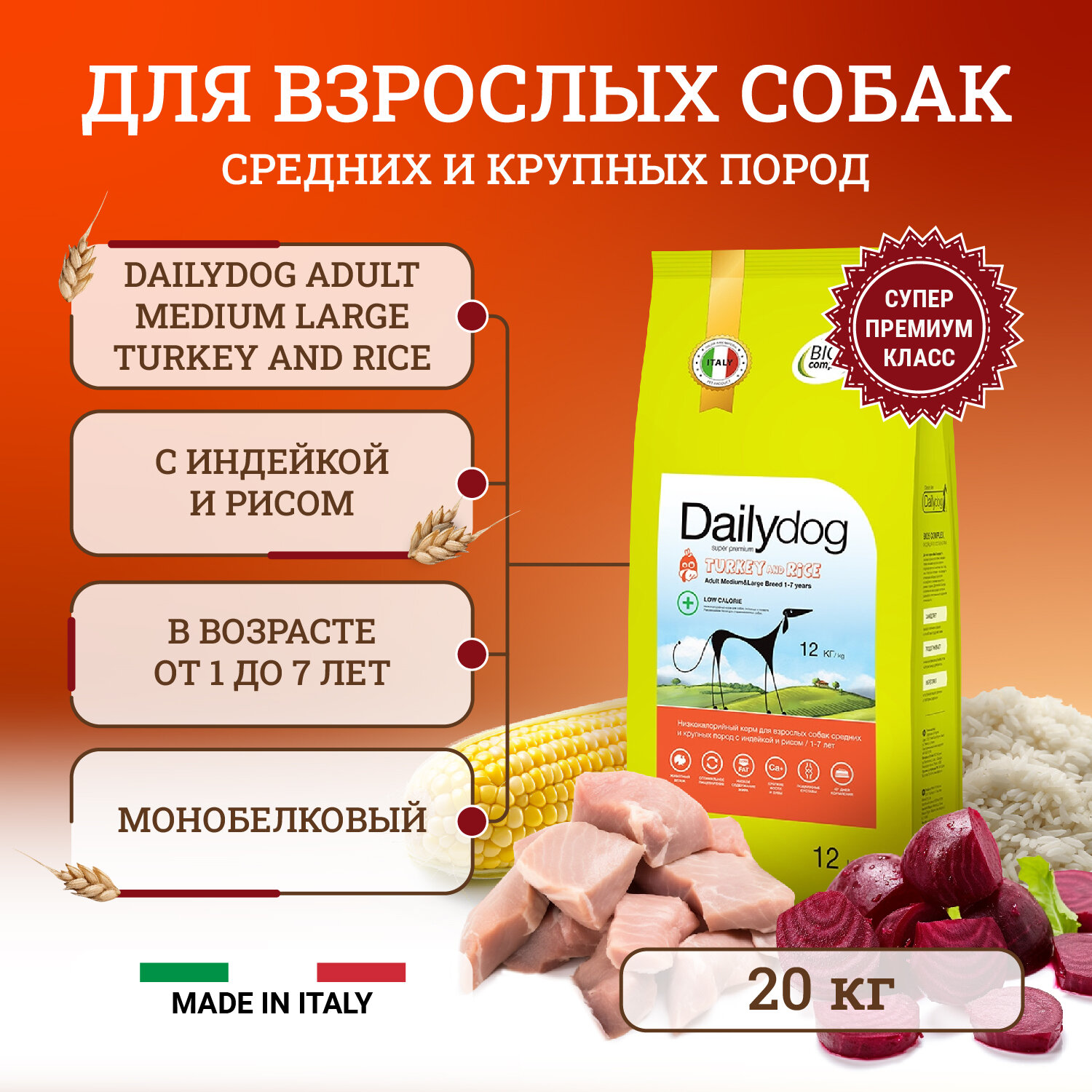 Dailydog корм для взрослых собак средних и крупных пород, индейка и рис 20 кг