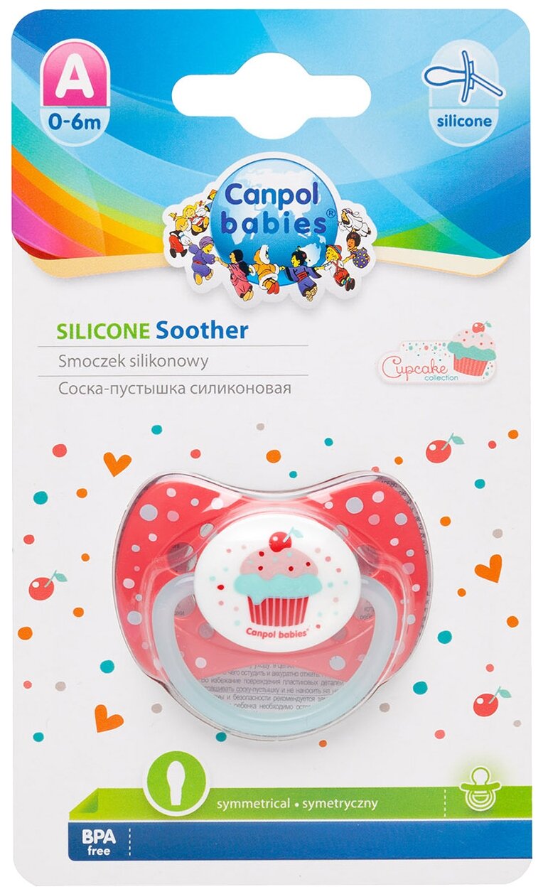 Canpol babies Пустышка симметричная силиконовая 0-6м, Cupcake, розовая 250989379
