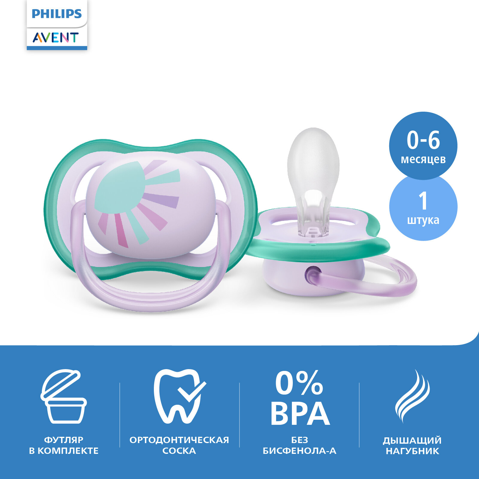 Соска-пустышка Philips Avent ultra air SCF086/26 с футляром для хранения и стерилизации, 1 шт, 0-6 м .