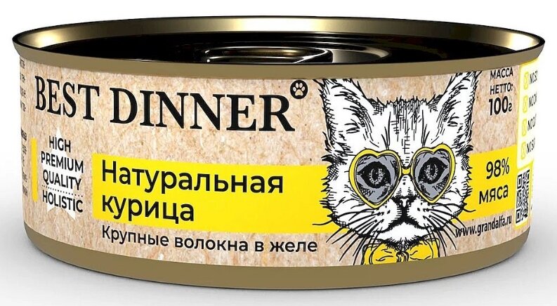 Консервы для кошек Best Dinner High Premium "Натуральная курица", 0,1 кг