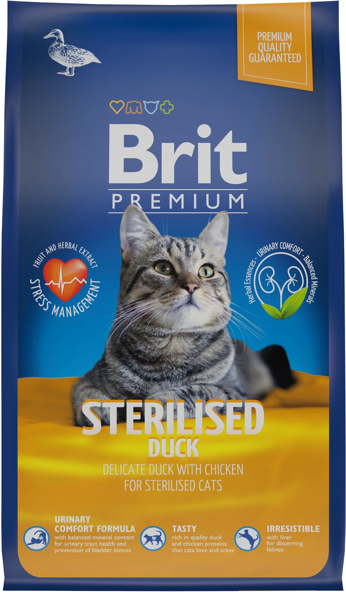 Сухой корм BRIT PREMIUM CAT DUCK & CHICKEN для взрослых кастрированных котов и стерилизованных кошек с уткой и курицей (8 кг)