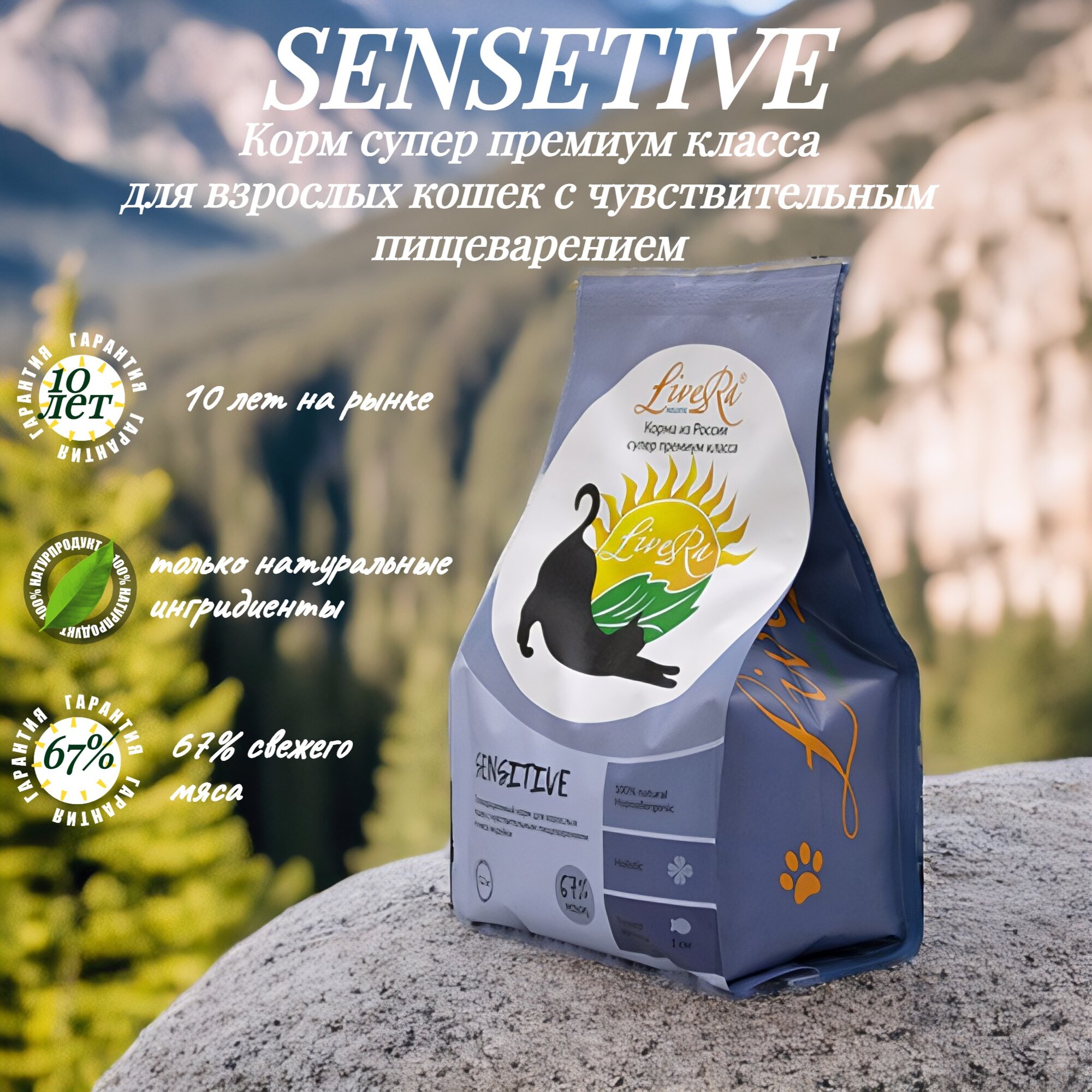 Корм сухой для взрослых кошек с чувствительным пищеварением LiveRa SENSITIVE, 1,2 кг