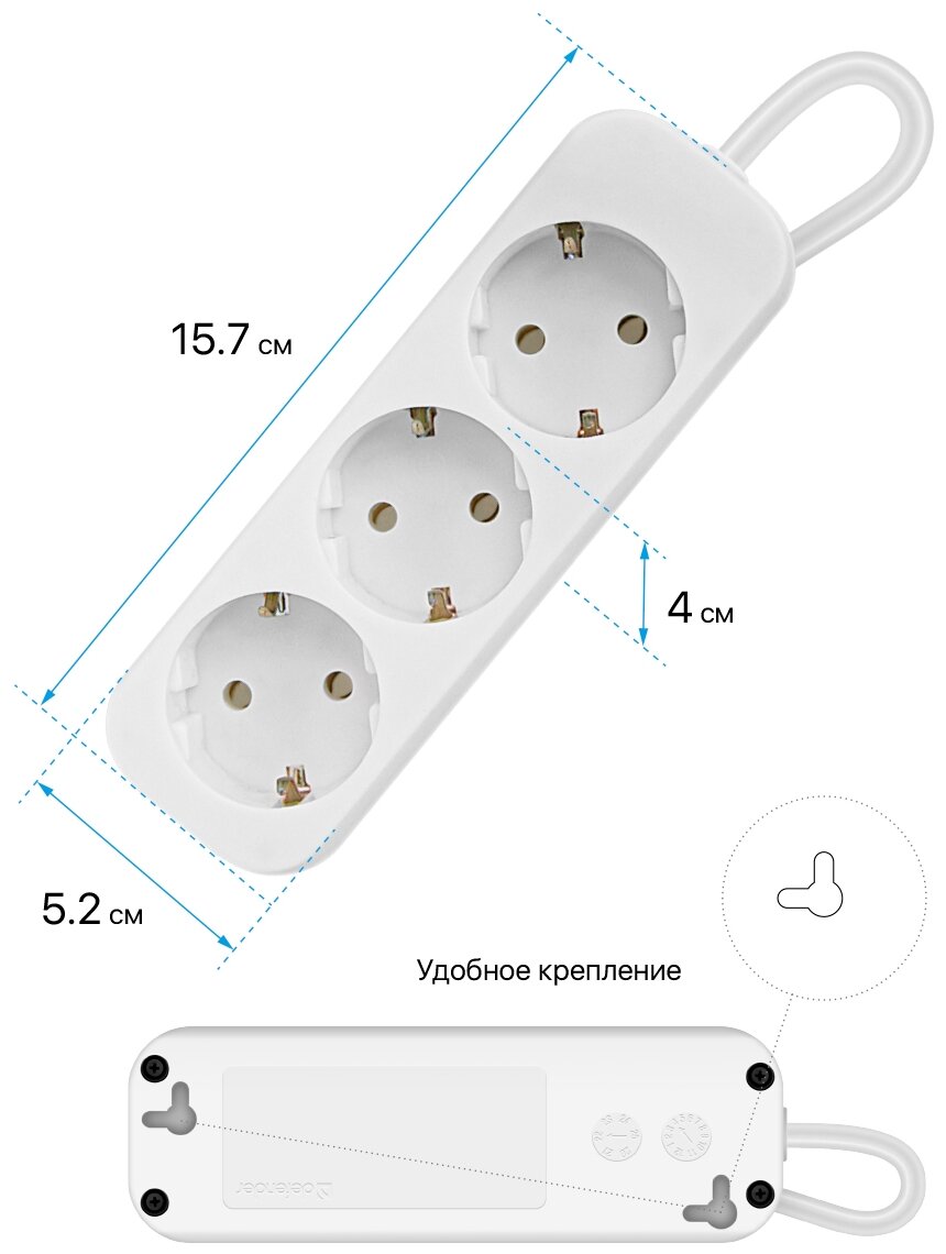 | Плюсы: | Цвет белый, длина кабеля 3м соответствует, три розетки, евровилка |