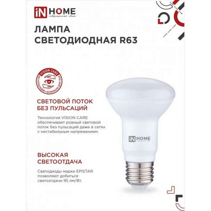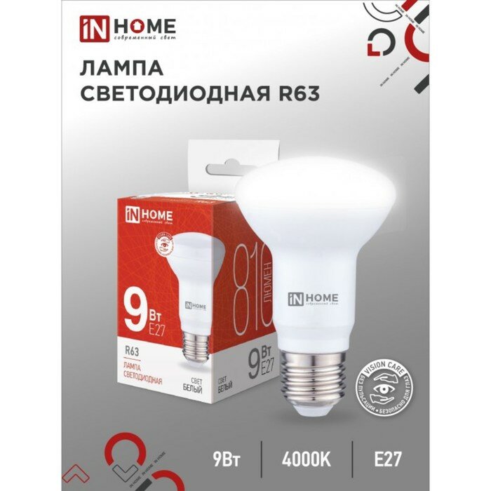 Лампа светодиодная IN HOME LED-R63-VC 4690612024325, E27, R63, 9 Вт, 4000 К