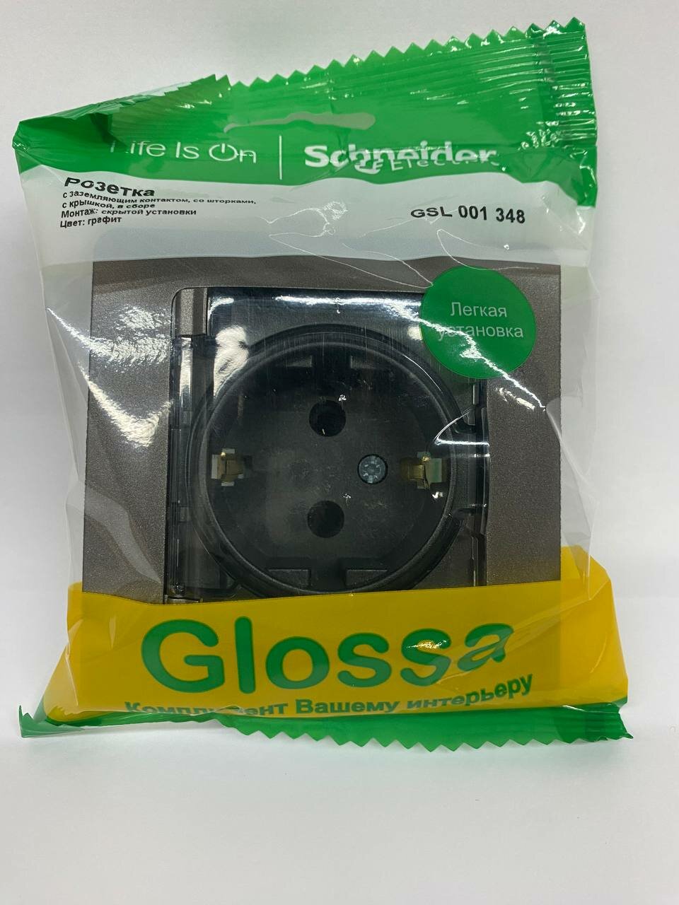 GLOSSA розетка с заземлением со шторками с крышкой в сборе IP44 графит GSL001348 Schneider Electric (2шт.)