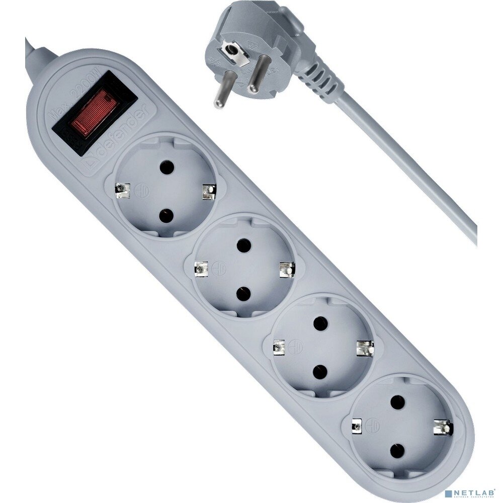 Сетевой фильтр DEFENDER ES Lite, 4 розетки, ПВС 3*1,0 мм2, мощность 2200 Вт, ток 10А, серый, 1.8 м