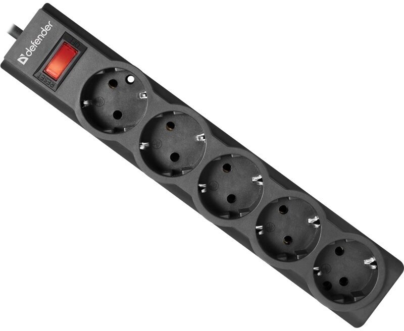 Сетевой фильтр Defender ES largo 5 черный, 5,0 м, 5 розеток