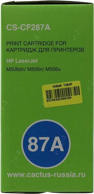 Картридж лазерный CACTUS (CS-CF287A) для HP LaserJet M506dn/M506x/M527dn, ресурс 9000 стр.
