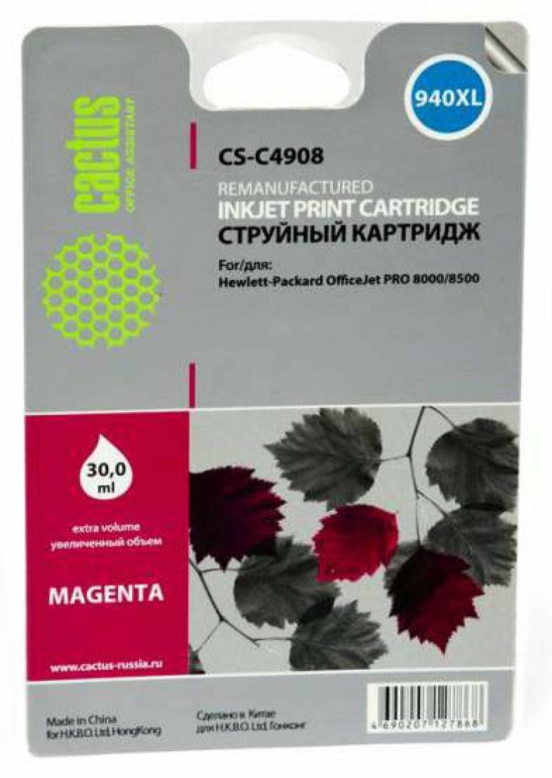 СохранитьКартридж Cactus CS-C4908, №940XL, пурпурный / CS-C4908 интересное: