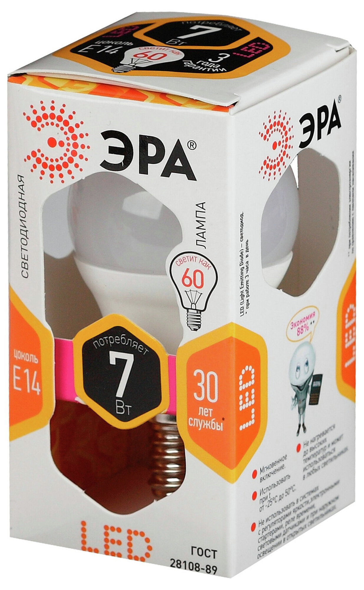 Купить Лампа светодиодная P45-7w-827-E14 шар 560лм, ЭРА Б0020548 (1 шт.)