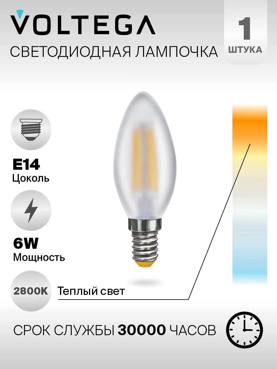 VOLTEGA Лампа светодиодная филаментная Voltega E14 6W 2800K матовая VG10-C2E14warm6W-F 7044
