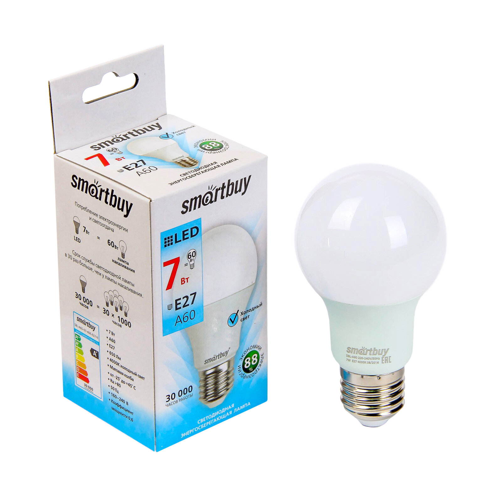 Ниже Вы можете прочитать отзывы на SMART BUY SBL-A60-07-40K-E27-N Лампа светодиодная E27 A60 7W (60W) 220V холодный SMART BUY, ознакомится с подробными характеристиками, посмотреть интересные обзоры и фотографии на SMART BUY SBL-A60-07-40K-E27-N Лампа светодиодная E27 A60 7W (60W) 220V холодный SMART BUY.