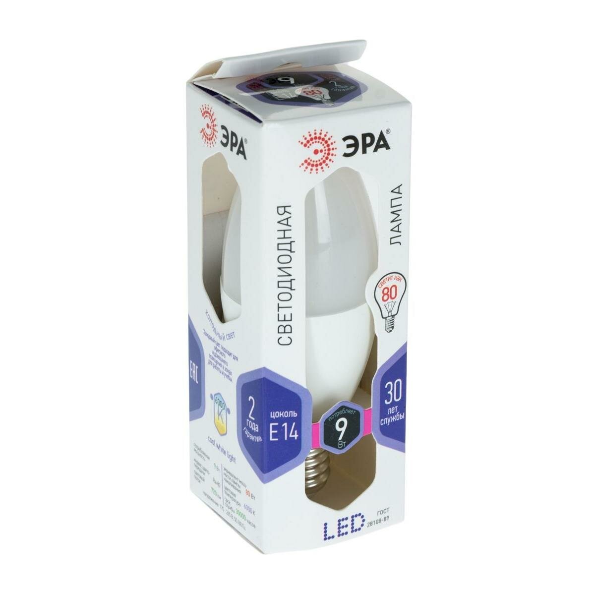 Лампочка светодиодная ЭРА STD LED B35-9W-860-E14 E14 9Вт свеча холодный дневной свет арт. Б0031403 (1 шт.)