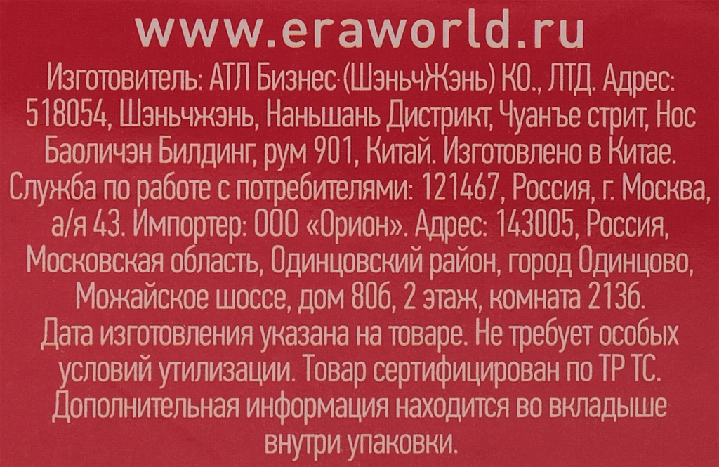 | Производитель | ЭРА |