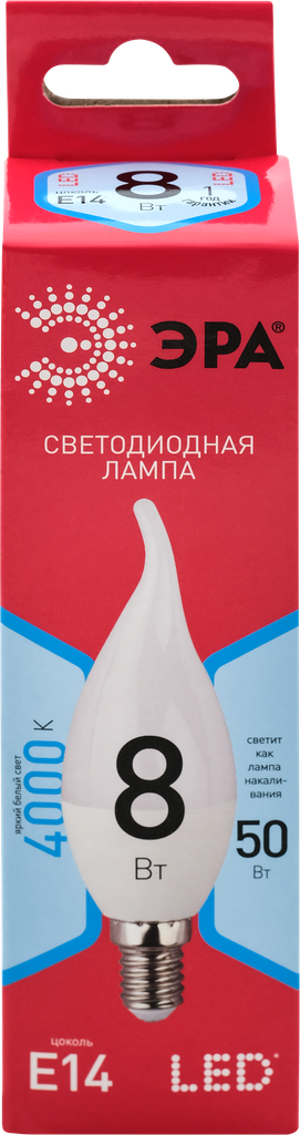 ЭРА Лампочка светодиодная ЭРА RED LINE LED BXS-8W-840-E14 R E14 / E14 8 Вт свеча на ветру нейтральный белый свет
