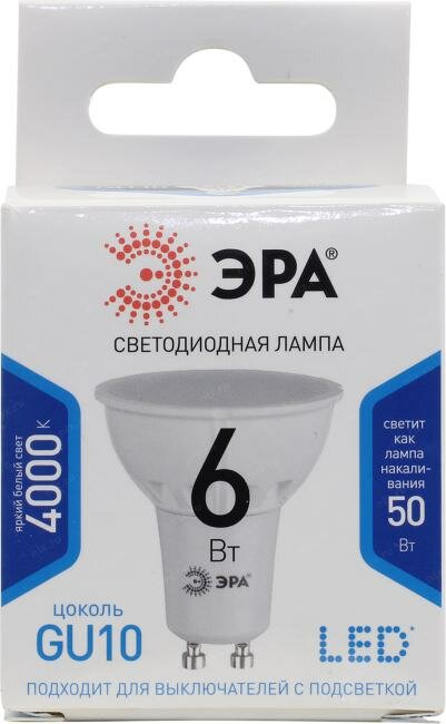 Лампа светодиодная ЭРА Б0020544, GU10, MR16, 6 Вт, 4000 К