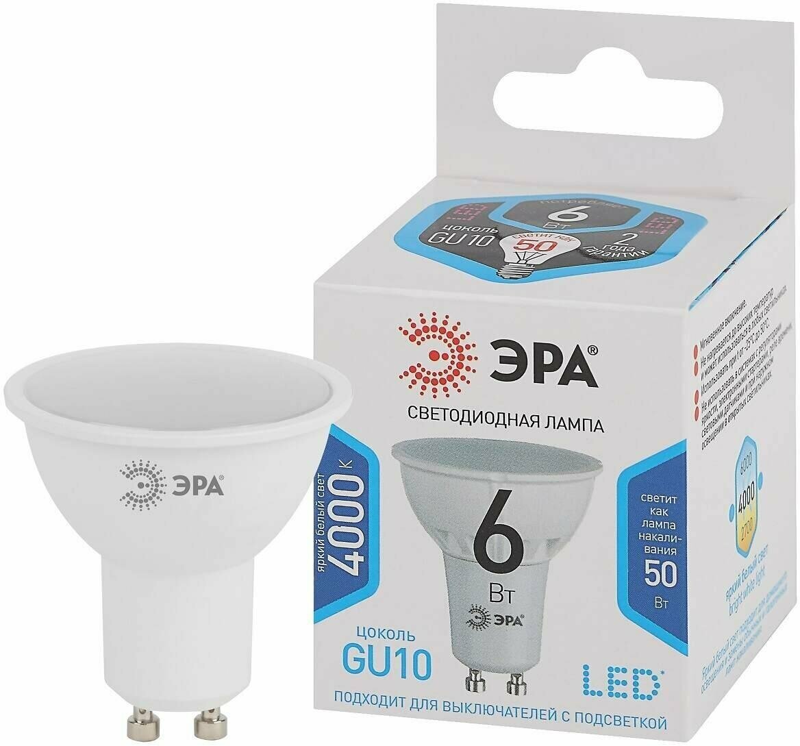 Набор светодиодных лампочек ЭРА LED MR16-6W-840-GU10 4000K софит 6 Вт 10 штук