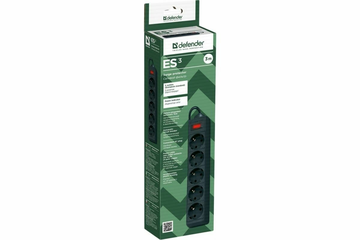 Купить Сетевой фильтр Defender ES 3.0 3 м, черный, 5 розеток (99485)