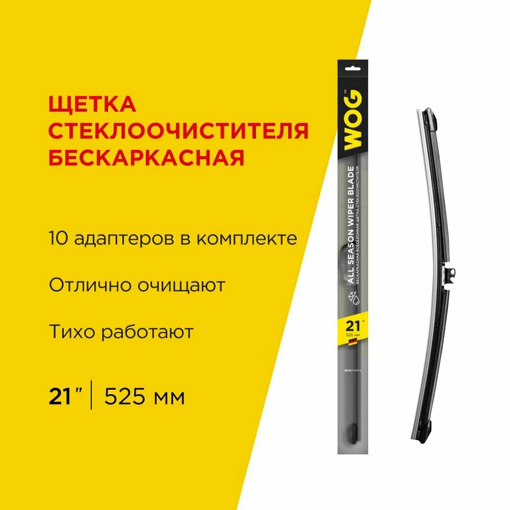 Щетка Стеклоочистителя Всесезонная Бескаркасная, Бесшумная 21’’ С Комплектом Адаптеров (10 Шт.) Wog, 1 Шт WOG арт. WGC1407
