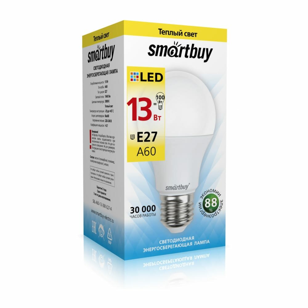 Ниже Вы можете прочитать отзывы на SMART BUY SBL-A60-13-30K-E27-A Лампа светодиодная E27 A60 13W (120W) 220V теплый SMART BUY, ознакомится с подробными характеристиками, посмотреть интересные обзоры и фотографии на SMART BUY SBL-A60-13-30K-E27-A Лампа светодиодная E27 A60 13W (120W) 220V теплый SMART BUY.