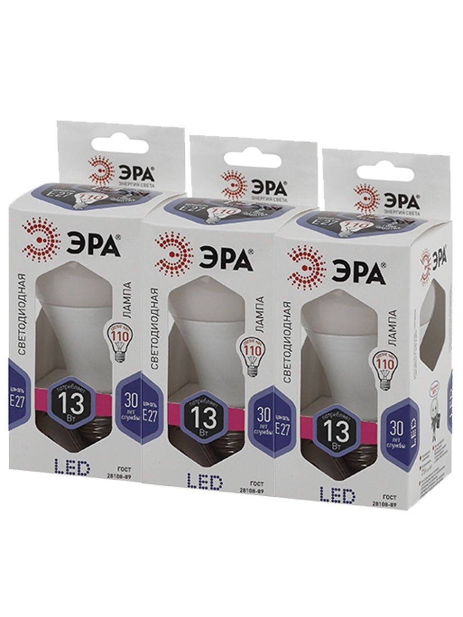 Комплект 30 штук, Лампа светодиодная ЭРА LED A60-13W-860-E27 13Вт Е27 6000К Б0031395