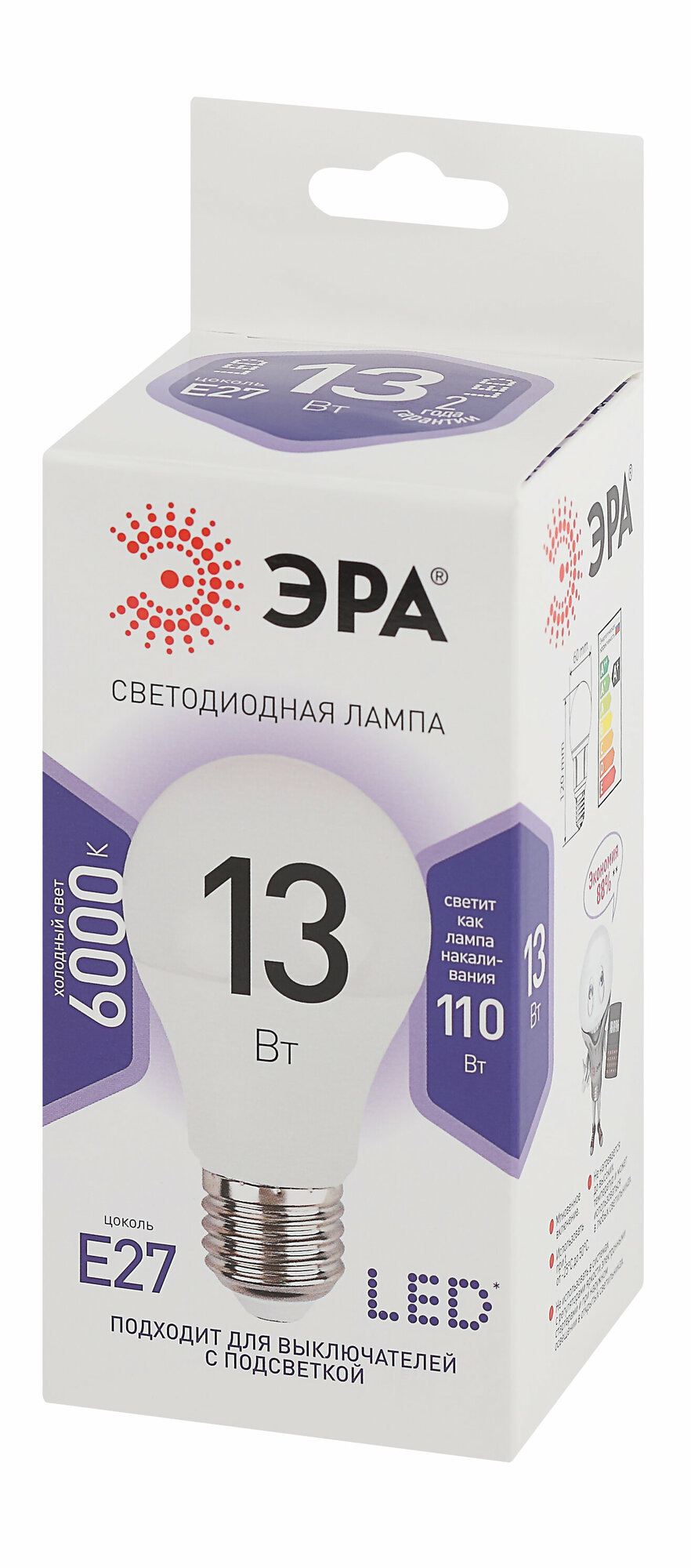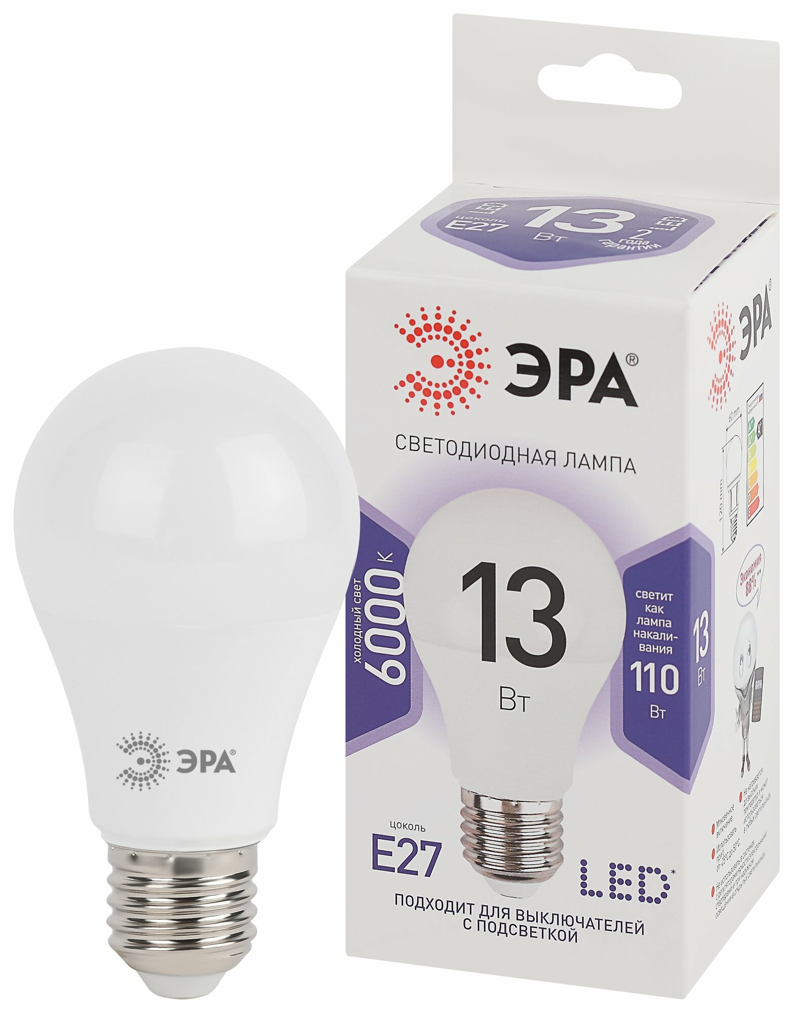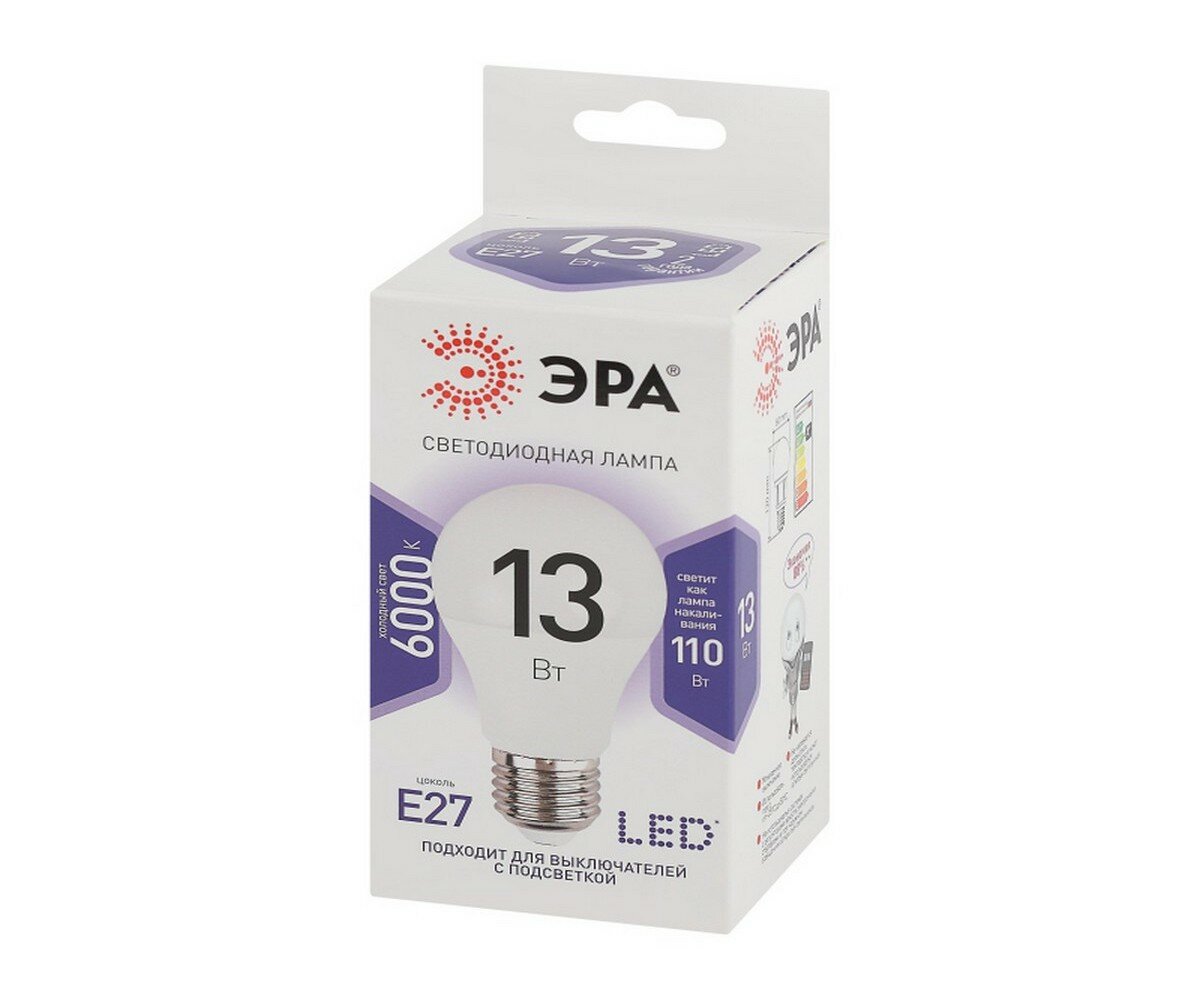 Лампа светодиодная ЭРА Б0031395, E27, A60, 13 Вт, 6000 К