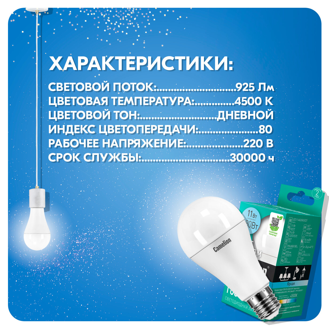 | Эквивалент лампы накаливания | 80 Вт |