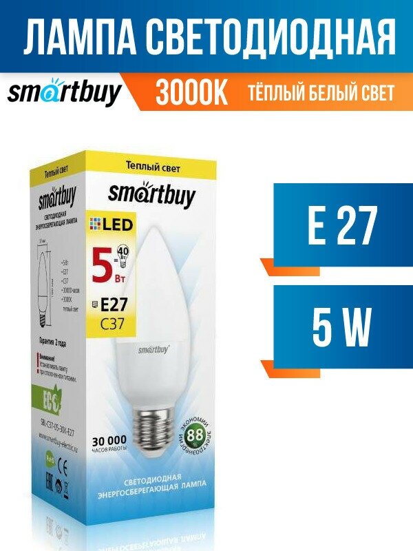 Лампа светодиодная Smartbuy SBL-C37-05-30K-E27 цоколь Е27 5 Вт