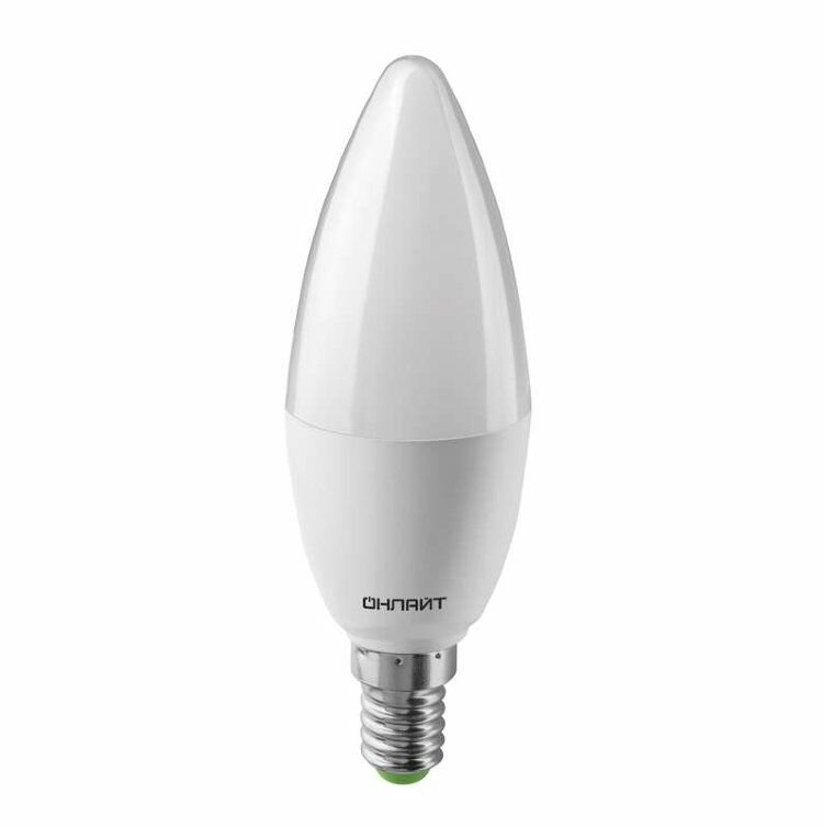 (5 шт.) Светодиодная лампочка онлайт свеча C37 E14 6W(480Lm) 6500K 6K 106x37 OLL-C37-6-230-6.5K-E14-FR 61127 Холодный белый. Цоколь E14