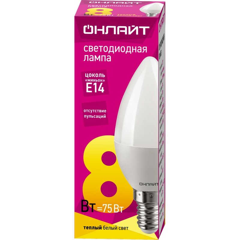 Лампа светодиодная E14 онлайт Свеча, 8Вт, 2700К, лампочка 1 шт. 71632