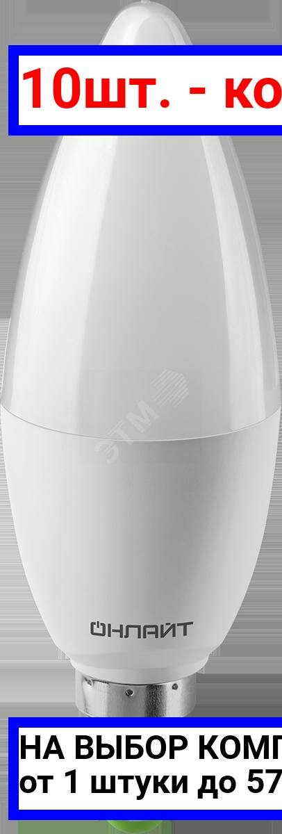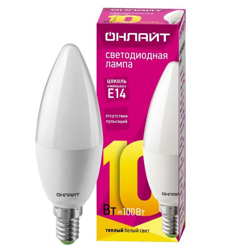 Лампа светодиодная E14 онлайт Свеча, 10Вт, 2701К, лампочка 1 шт. 61956