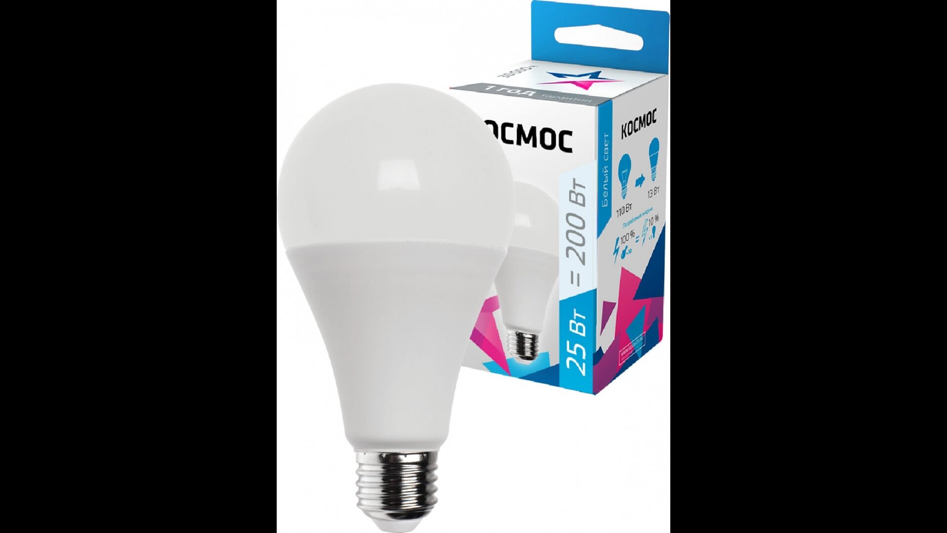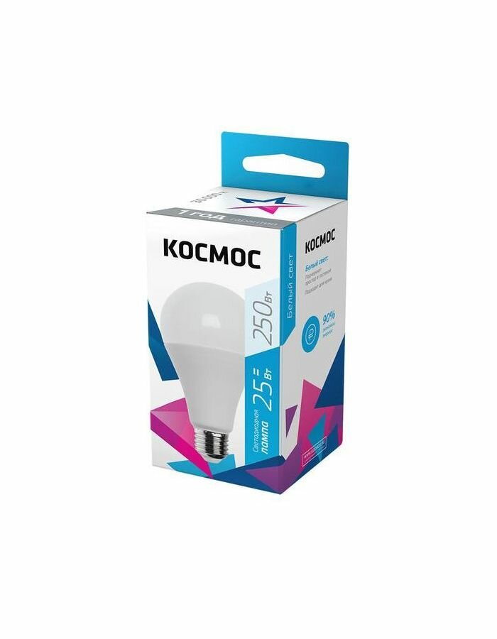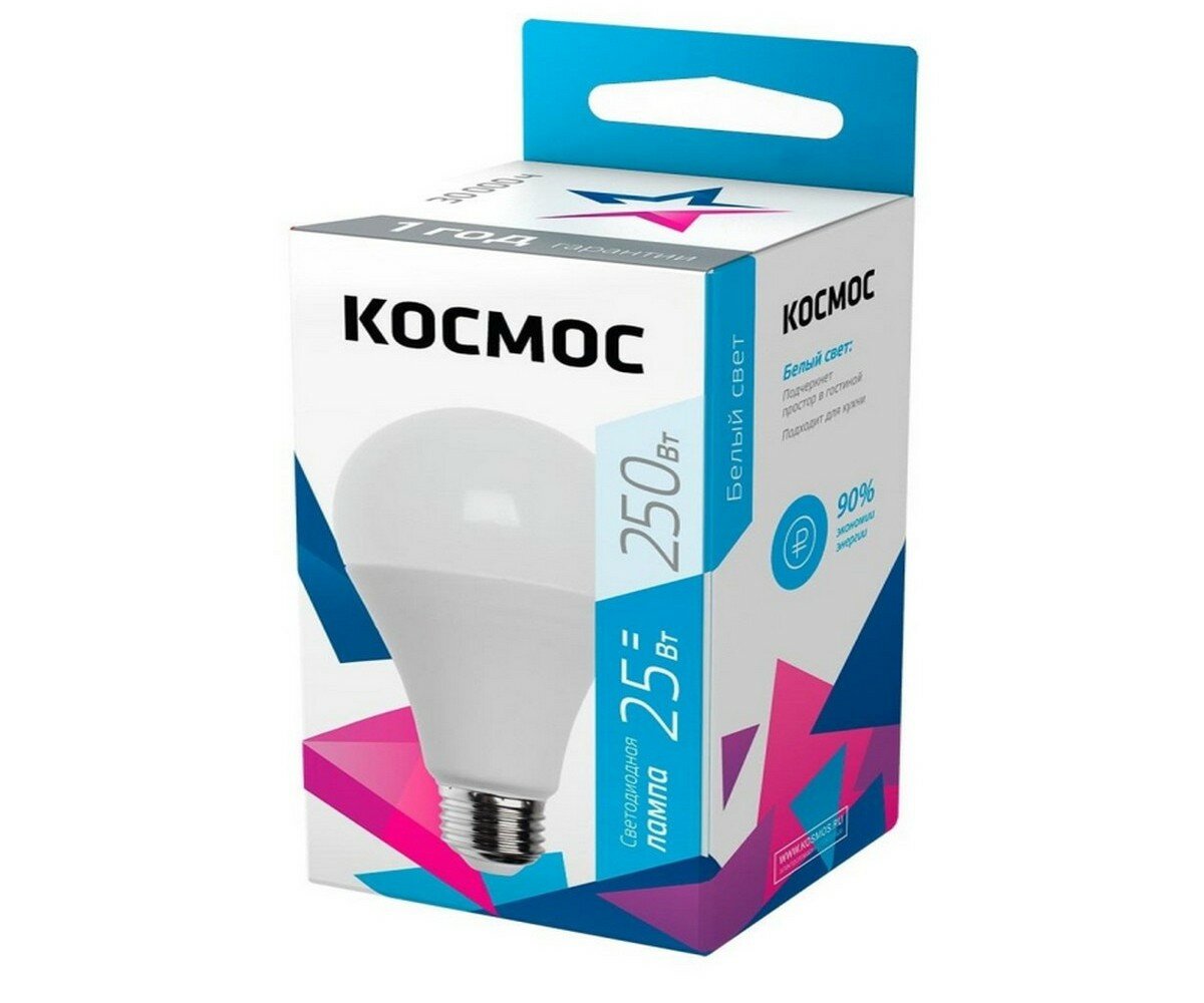 Лампочки светодиодные Космос А65 25Вт Е27 (аналог 200Вт) Нейтральный белый свет, 1 шт.